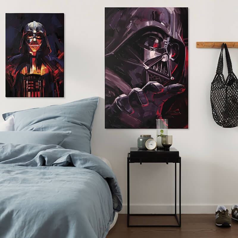 Une toile imprimée de Dark Vador dans un jeu de couleurs flamboyant de rouge, d'orange et de noir - comme s'il venait directement de l'enfer de la galaxie. Son masque emblématique respire l'autorité et le drame, tandis que les accents enflammés lui confèrent un look presque épique, presque démoniaque. C'est comme un cri silencieux mais fort : " Je suis ton père... et tu as intérêt à me prendre au sérieux " !