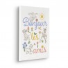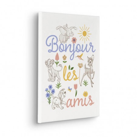 Un message joyeux au charme Disney : " Bonjour les amis " est accompagné de personnages préférés dessinés avec amour, tels que Dumbo, Simba, Bambi et Lucky. Le design combine des illustrations ludiques avec des couleurs douces et des fleurs épanouies qui créent une atmosphère vivante et conviviale. Il respire la joie et la chaleur et fait entrer la magie du monde de Disney directement dans la maison. Parfait pour transformer n'importe quelle pièce en un lieu de bonheur et d'insouciance !