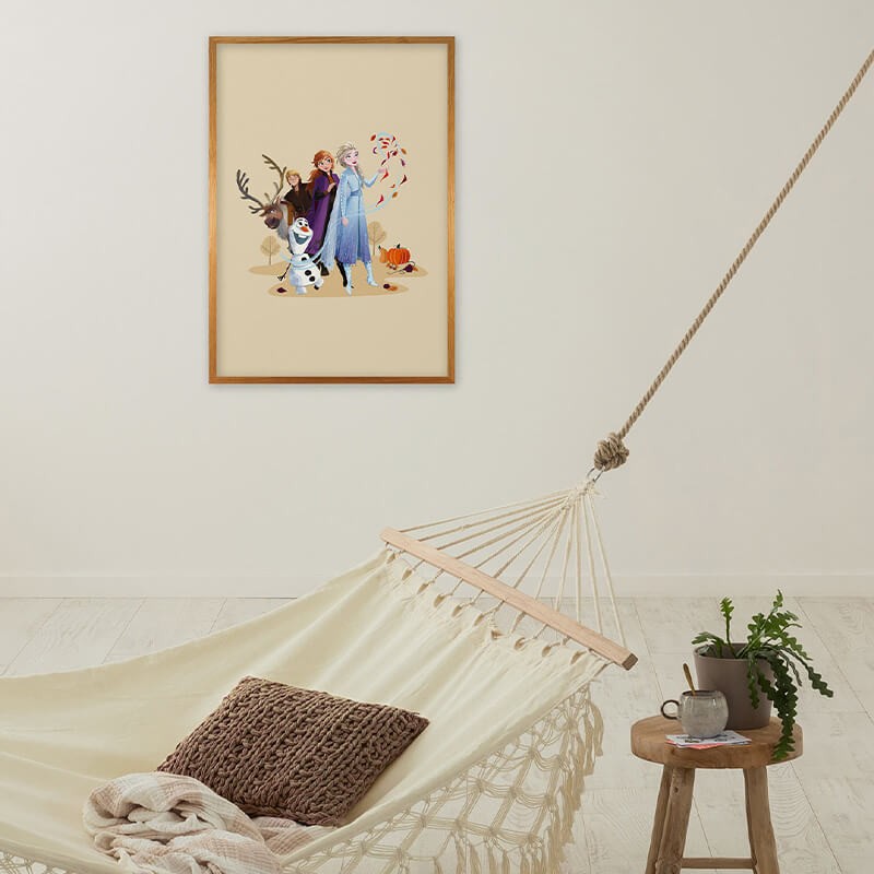 Une fresque magique qui réunit les héros d'Arendelle dans un décor automnal. Elsa, Anna, Olaf, Kristoff et Sven respirent l'aventure et la chaleur. Les couleurs douces et les détails automnaux tels que les feuilles et les citrouilles font de ce tableau un point fort enchanteur pour tous les fans de Frozen. Parfait pour enchanter n'importe quelle pièce avec un peu de splendeur royale et de magie nordique !