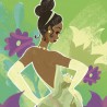 Tiana, sûre d'elle, sait ce qu'elle veut et donne un coup de froid à la grenouille. Les tons vifs des fleurs vertes et violettes décorent le portrait à la manière d'un conte de fées et soulignent la beauté de la célèbre princesse.