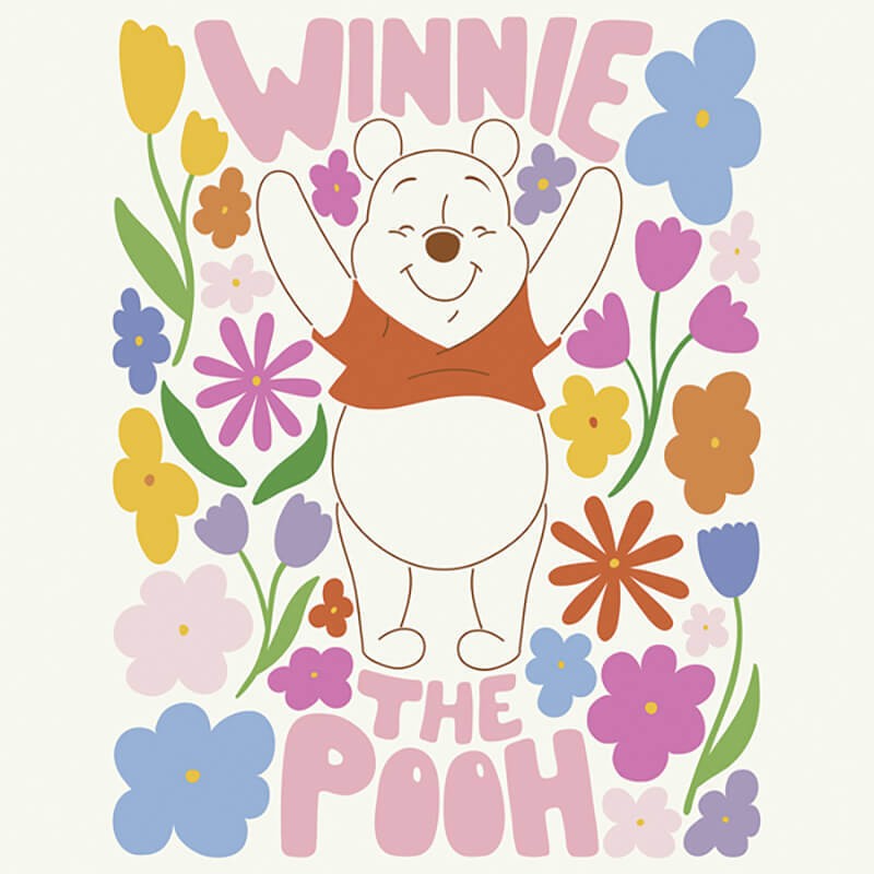 Un design joyeux avec des fleurs lumineuses et le charme inimitable de Winnie l'Ourson ! Les couleurs fraîches et le motif ludique créent une atmosphère qui respire la chaleur et la joie. Parfait pour donner à chaque pièce une touche de magie Disney et de légèreté enfantine !