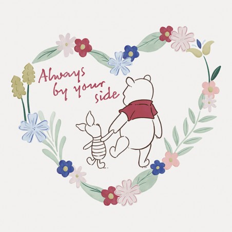 Un motif qui réchauffe le coeur et qui met en scène l'amitié inséparable de Winnie l'Ourson et de Porcelet. Entouré d'un coeur fleuri délicat et du message affectueux " Always by your side " (" Toujours à tes côtés "), ce tableau rayonne de chaleur et de sécurité. Un merveilleux complément pour toute pièce qui souhaite montrer un peu plus d'amour et de solidarité.