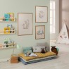 Cette affiche murale montre Winnie l'ourson dans une représentation simple et mignonne qui capture parfaitement le charme de l'ourson populaire. Houdou est assis, pensif, entouré d'éléments floraux tels que des branches et des feuilles délicates, qui confèrent au tableau une atmosphère naturelle et rêveuse.