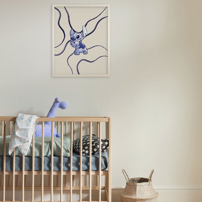 Le design ludique capture parfaitement l'énergie et le charme espiègle de Stitch. Avec sa pose dynamique et ses lignes ondulées qui symbolisent le mouvement et la vivacité, ce tableau apporte du plaisir et une touche de chaos dans chaque pièce. Un must pour tous les fans de " Lilo & Stitch " qui souhaitent ramener un peu d'aventure intergalactique chez eux.
