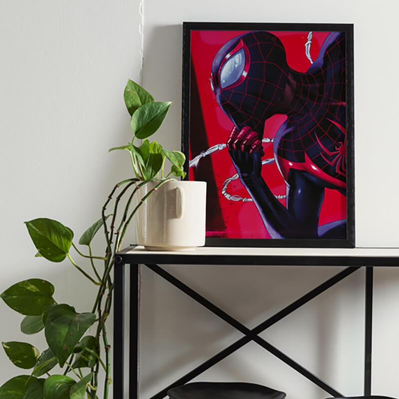 Le portrait de Spider-Man montre le héros Marvel dans une pose de penseur et fait entrer le personnage populaire chez soi, sur les murs, de manière décorative. Le rouge et le bleu vifs créent de superbes contrastes et conviennent parfaitement aux pièces des adolescents et des jeunes adultes.