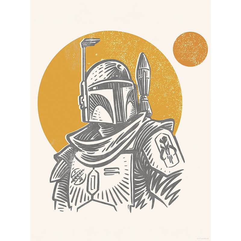 Avec son casque emblématique et le désert en arrière-plan, ce posters d'art incarne le légendaire chasseur de primes Boba Fett dans toute sa calme détermination. Sa palette de couleurs chaudes et ses lignes épurées en font un véritable atout pour tout fan de Star Wars qui souhaite apporter une touche de coolitude galactique à son intérieur.