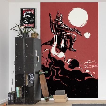 L'image montre une représentation iconique de Dark Vador, le célèbre antagoniste de la saga Star Wars. Il est conçu dans un style d'affiche rétro, avec des couleurs dominantes comme le noir, le rouge et le blanc, qui soulignent l'atmosphère sombre et menaçante. Parfait pour tous les amateurs de Star Wars !