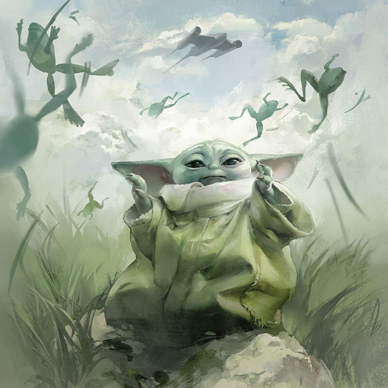 Grogu, connu sous le nom de " Baby Yoda ", est ici représenté dans un environnement naturel paisible, entouré de grenouilles flottantes, soulevées par la Force. Les couleurs délicates et la lumière douce du tableau créent une atmosphère apaisante, tandis que les grenouilles en train de jouer donnent au motif un aspect vivant. Une oeuvre d'art parfaite pour les fans de The Mandalorian, qui capture la magie et l'innocence de ce personnage populaire et ajoute une touche d'harmonie galactique à n'importe quelle pièce.