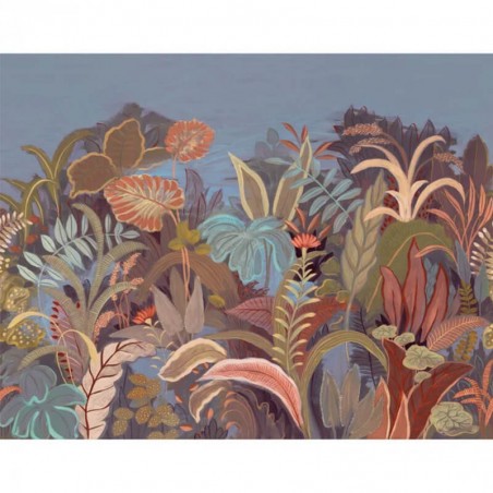 Panoramique au caractère affirmé, Brasilia évoque les jungles luxuriantes et les toiles poétiques du Douanier Rousseau. Ce décor foisonnant met en scène une nature débordante de vie, où chaque feuille, chaque fleur et chaque ramure semble peinte à la main. Des feuillages mouchetés, des corolles étoilées et des jeux d'ombres contrastés composent une symphonie tropicale vibrante. Un véritable travail d'artiste, idéal pour animer une pièce à vivre et insuffler une touche d'évasion raffinée.