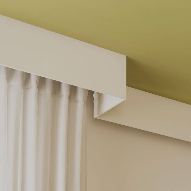Ce modèle permet de dissimuler tringles a rideaux, câbles, tuyaux ou éléments techniques pour offrir un rendu propre et harmonieux. Il peut aussi servir de base pour coller d'autres profilés décoratifs ou intégrer un éclairage LED pour personnaliser l'ambiance de la pièce. Avant installation, il est recommandé de vérifier la disposition générale afin d'obtenir le résultat décoratif souhaité. La température maximale de contact des profilés Orac est de 65C.