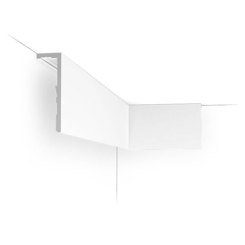 La corniche CX217-2600 Orac Décor est un profilé en L conçu pour réunir élégance et fonctionnalité. Elle combine corniche, support de rideaux et diffuseur de lumière dans un seul élément. Légère, discrète et design, elle apporte une solution épurée pour moderniser une pièce tout en masquant les éléments techniques.