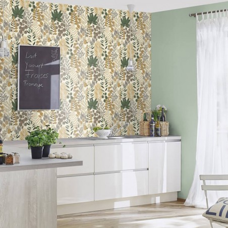 Papier peint motif fougères vert crème. Ce papier peint est un choix élégant et apaisant pour décorer une pièce. Les motifs de fougère apportent une touche de nature et de tranquillité à tout espace. Le vert crème est une couleur douce qui se marie bien avec de nombreux styles de décoration. Il peut être utilisé dans une chambre à coucher pour créer une ambiance relaxante, dans un salon pour apporter une sensation de fraîcheur et de calme, ou dans une salle de bains pour créer une atmosphère de spa. Ce type de papier peint est polyvalent et peut être utilisé dans différents types de décoRaccord sauté. Il se marie bien avec des meubles en bois clair ou en rotin, ainsi qu'avec des accessoires décoratifs en matières naturelles comme le lin ou le jute.