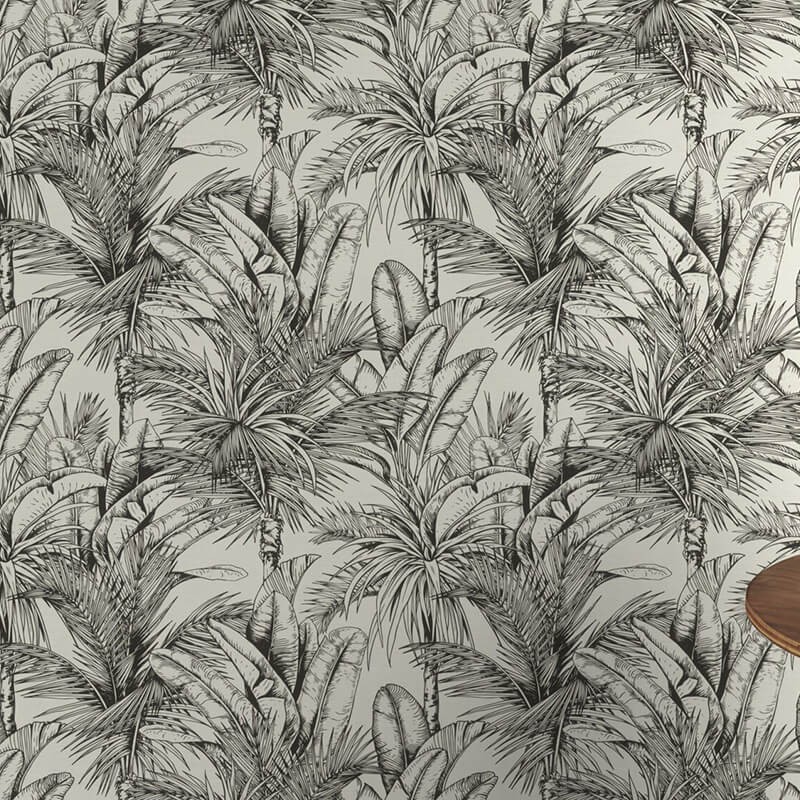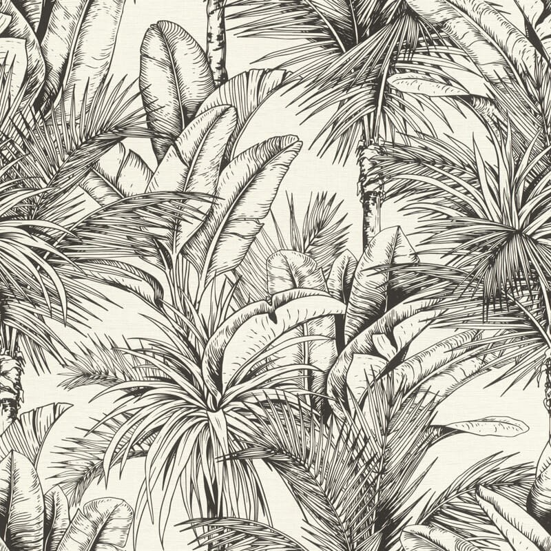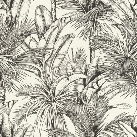 Papier peint motif Tropic XXL coloris noir et blanc. Ce papier peint transforme chaque pièce en une jungle urbaine moderne. Le motif en vogue avec des feuilles de style botanique rayonne de vivacité et de joie de vivre et crée en même temps une atmosphère de bien-être.