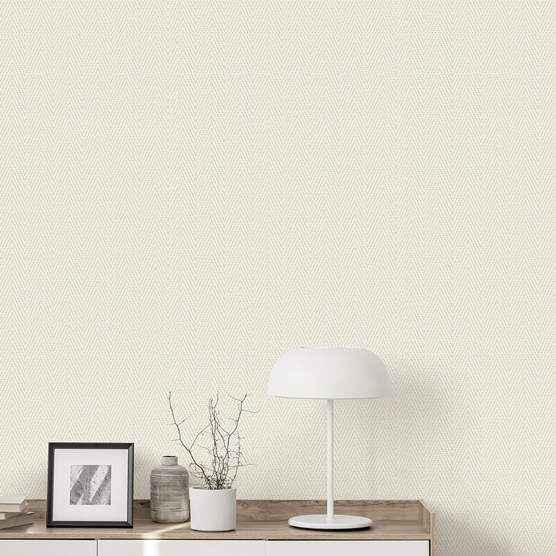 Ce papier peint présente un motif géométrique en chevrons fins, inspiré des trames textiles et des lignes architecturales. La répétition régulière crée un rythme graphique équilibré, idéal pour structurer les murs avec élégance.