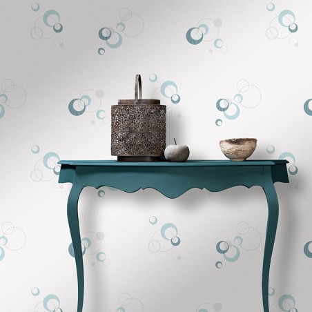 Ce papier peint séduit par son motif graphique contemporain, composé de formes circulaires délicatement superposées. Les jeux de pleins et de vides créent un rythme visuel équilibré, à la fois moderne et léger.