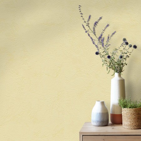 Ce papier peint uni séduit par son aspect délicatement texturé, inspiré des enduits décoratifs et des murs patinés. Son effet nuancé apporte de la profondeur aux surfaces tout en conservant une grande douceur visuelle. Il crée une atmosphère apaisante et lumineuse, idéale pour sublimer un intérieur contemporain, naturel ou intemporel.