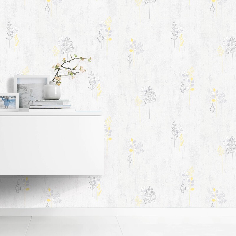 Ce papier peint présente un motif décoratif inspiré de formes végétales stylisées, disposées avec légèreté sur un fond subtilement texturé. Les éléments graphiques, fins et aériens, créent un rythme visuel équilibré qui habille le mur sans l'alourdir.