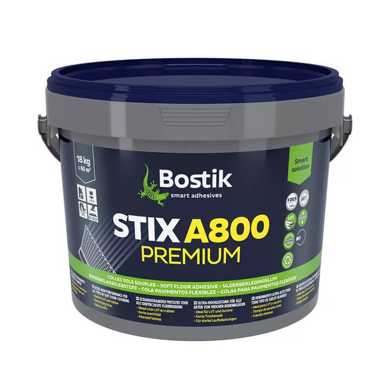 La Stix A800 Premium Bostik est une colle acrylique très hautes performances sans solvant spécialement conçue pour la pose des revêtements de sols souples techniques ou nerveux. Grâce à son tack puissant et son piégeant initial élevé, elle assure un blocage rapide des revêtements et une excellente cohésion finale, limitant les variations dimensionnelles dues aux contraintes thermiques ou mécaniques. Adaptée aux sollicitations intenses, elle convient aussi bien en sol qu'en mur.