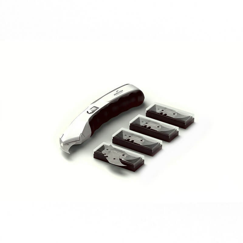 Le cutter Quick-Step Livyn QSVKNIFEB est conçu pour la découpe précise et professionnelle des sols vinyles LVT flottants ou collés. Sa lame concave permet de réaliser des coupes droites ou courbes sans abîmer le revêtement, garantissant une finition soignée à chaque pose.