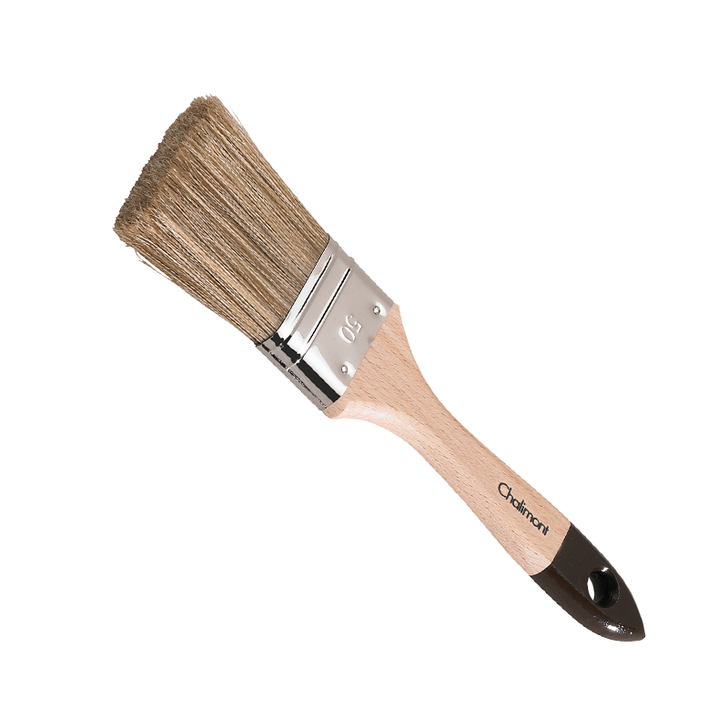 Mélange soie et polyester sablé. Virole acier nickelé. Manche bois verni. Bout marron. Série épaisse.