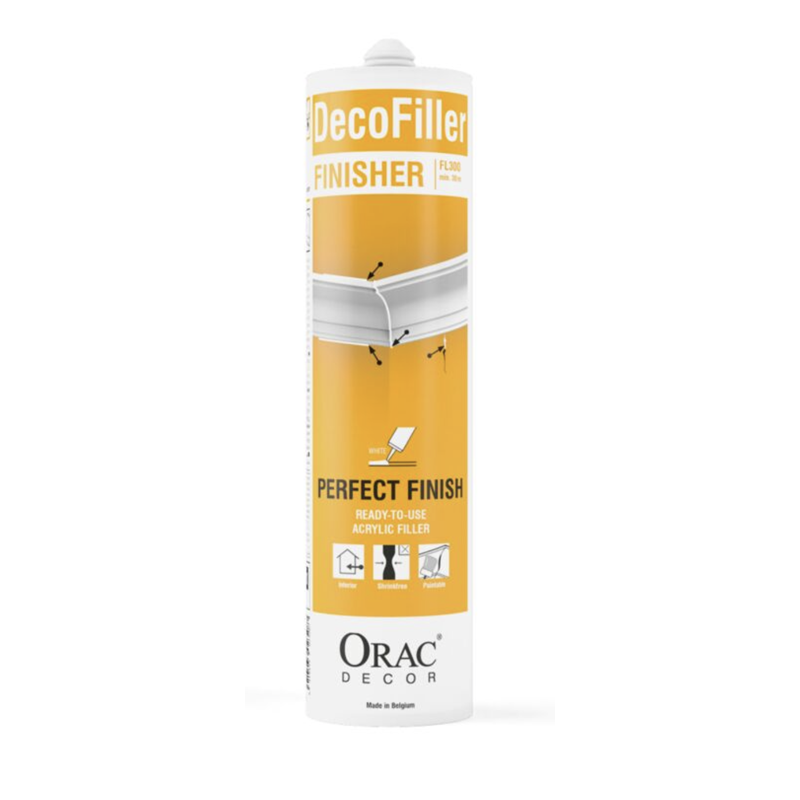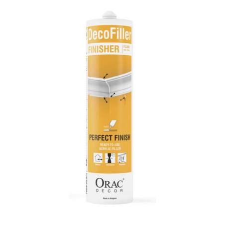 Pour une finition irrétrécissable de joints (entre profils décoratifs après adhésion, entre murs et profils, entre mur et plafond et murs entre eux), fissures, trous et irrégularités dans les profils ou les murs