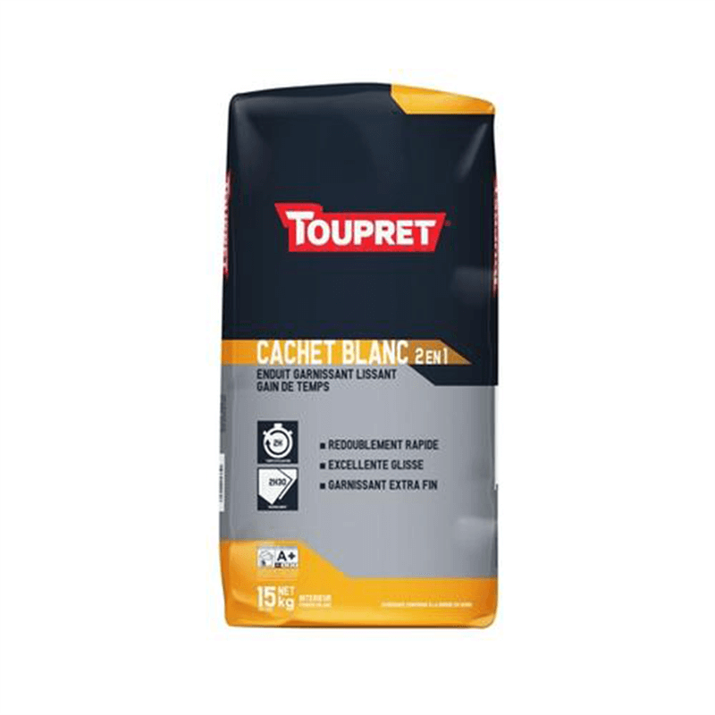 Toupret Cachet Blanc s'applique sur supports neufs ou rénovés, bruts ou peints et est recouvrable par tous types d'enduits, peintures et revêtements muraux.