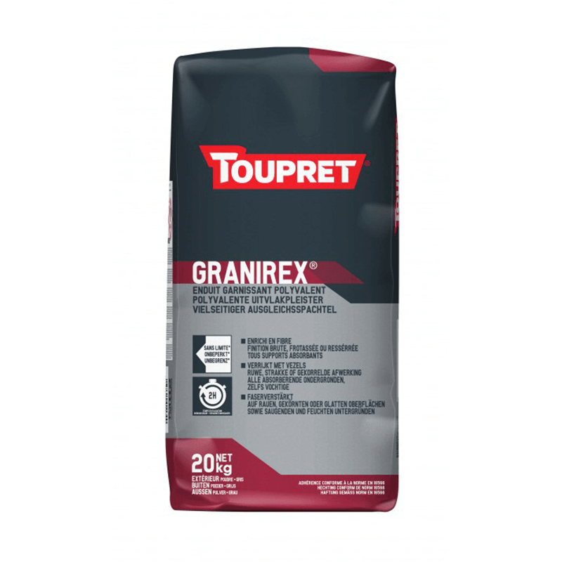 Toupret GRANIREX est un enduit de rénovation en poudre, extérieur, pour application manuelle.