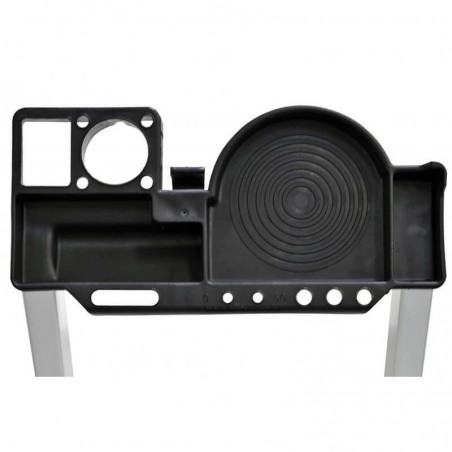 Pratique avec sa tablette porte-outils très pratique avec réglette graduée et crochet porte-seau