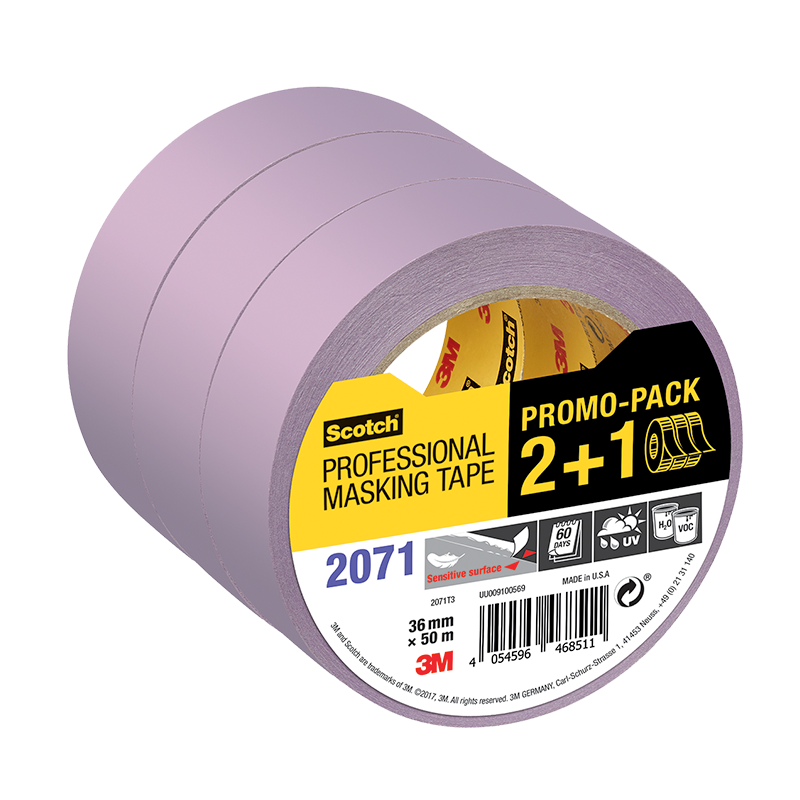 Lot 2+1 de ruban de masquage professionnel surfaces délicates 3M 36mmx50m référence 2071