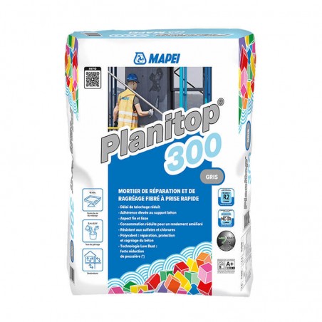 Caractéristiques techniques :Planitop 300 est un mortier thixotrope monocomposant, composé de ciment PMES, d'agrégats sélectionnés de granulométrie fine, de fibres synthétiques, de résine synthétique et d'additifs spéciaux.