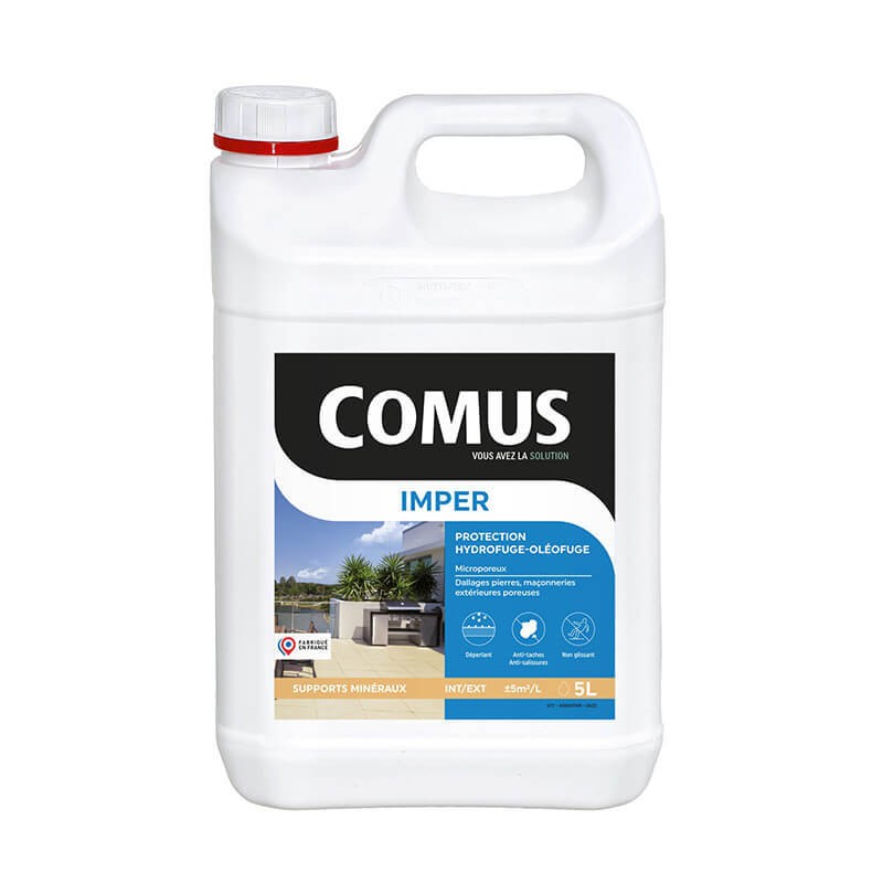 IMPER est une imprégnation incolore hydrofuge et oléofuge destinée à la protection des matériaux poreux (pierres, briques, ciment, béton...). Incolore, non filmogène et microporeux, IMPER apporte aux matériaux poreux une protection naturelle contre l'eau et les corps gras qui perlent sur le support sans être absorbés. Les matériaux sont alors protégés durablement contre l'éclatement dû au gel et l'encrassement. Elle est également non glissant et peut être utilisé pour la protection des dallages au sol.