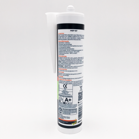 Mastic MS polymères polyvalent pour l'étanchéité, le calfeutrement de maçonnerie et le collage souple de zinc, brique, béton, pierre naturelle, miroir, fer, acier, aluminium, matières synthétiques, bois, aggloméré, gouttière, descentes d'eaux pluviales