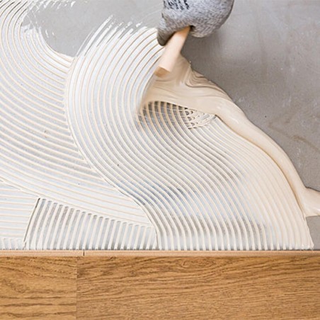 Une fois durcie, la colle conserve ses propriétés tout au long de la durée de vie du parquet, assurant stabilité et résistance aux contraintes mécaniques et thermiques.
