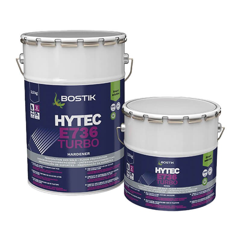 Barrière anti-remontée d'humidité à prise rapide avant pose de revêtements de sol souples ou rigides. Système époxydique bi composant pré dosé à mélanger. HYTEC E736 TURBO forme une barrière contre les risques de remontées d'humidité ou l'humidité résiduelle anormale des supports à base de ciment et répond aux exigences de préparations des supports défini les DTU des revêtements en vigueurs.
