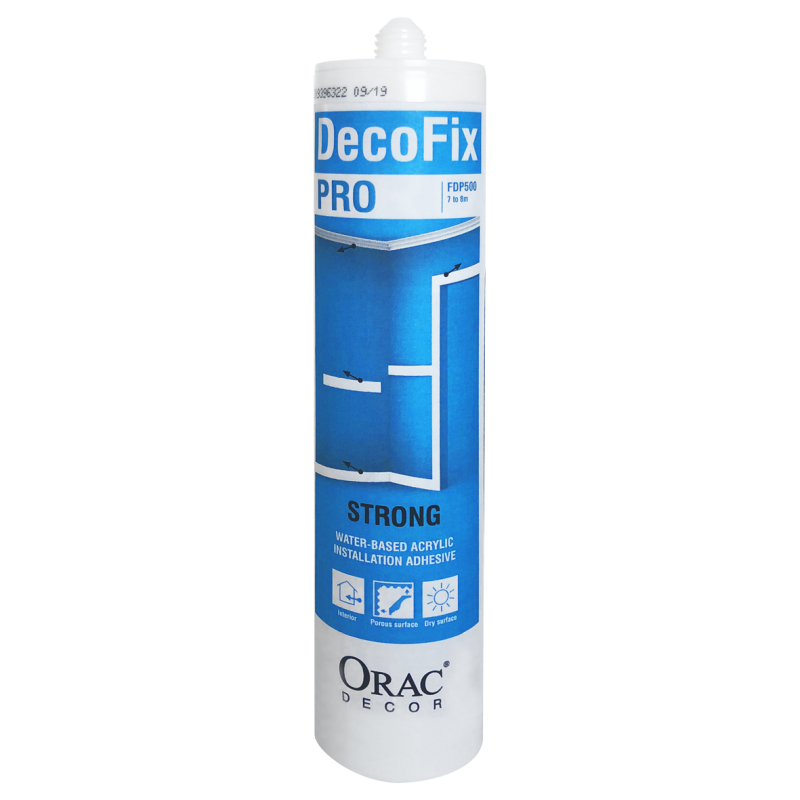 DECOFIX PRO 310ML d'Orac est une colle d'installation forte pour pose à l'intérieur, surfaces poreuses ET pièces non humides. Ce tube a un rendement de 7 à 8 mètres linéaires.