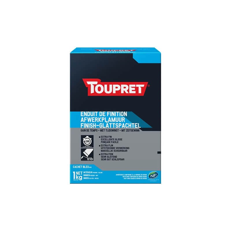 Toupret Cachet Bleu est un enduit de finition gain de temps en poudre, interieur, pour application manuelle. Toupret Cachet Bleu s'applique sur supports neufs ou renoves, bruts ou peints et est recouvrable par tous types d'enduits, peintures et revetements muraux. Toupret Cachet Bleu est ideal en ratissage et bouchage-porage avec une excellente glisse sans surepaisseur et sans arrachement. Il a un haut pouvoir couvrant.
