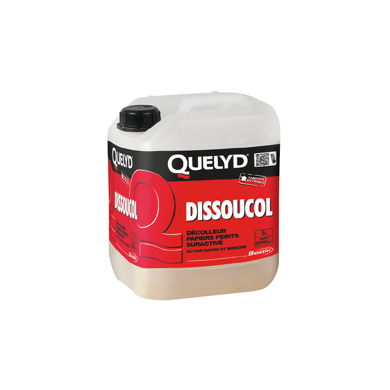 Dissoucol 5L Quely permet de décoller les papiers peints et papiers vinyles.