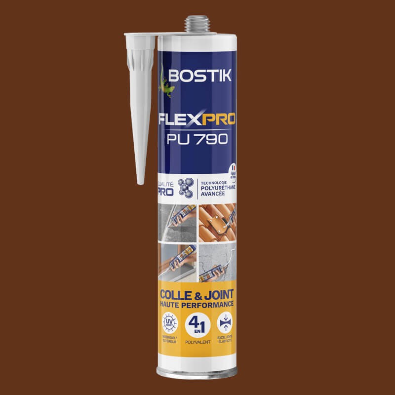 BOSTIK FLEXPRO PU790 est un mastic-colle polyuréthane avancée multi-usages innovant, destiné à la réalisation de joints à élasticité durable d?étanchéité (bâtiment et périphérique de menuiserie), de calfeutrement, de dilatation, de sols, de soubassements semi-enterrés, sur la plupart des supports utilisés dans le bâtiment (béton, maçonnerie, aluminium, bois, verre, carrelage, PVC, revêtement PVC).