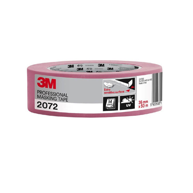Le ruban de masquage professionnel 3M 2072 Extra Sensitive est conçu pour un usage intérieur. Ce ruban de masquage à faible adhésion est destiné aux surfaces particulièrement sensibles, par exemple, le papier peint, le vernis, la technique de la spatule et les décors. Notre ruban fournit des lignes de peinture précises sur des surfaces lisses et semi lisses. Il adhère fermement, mais s'enlève sans traces jusqu'à 14 jours sans endommager la surface.