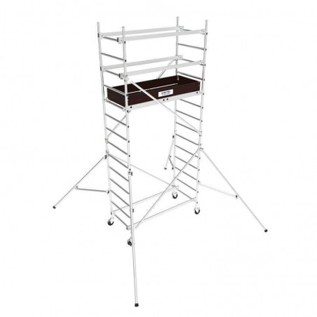 Le STARTEO est un échafaudage roulant aluminium avec une surface utile plancher de 148 x 58 cm. Sa structure légère, ses stabilisateurs optimisés et son dimensionnement hors tout le rendent particulièrement adapté à un usage en intérieur. Il répond à la norme EN 1004-1 et au décret 2004-924.