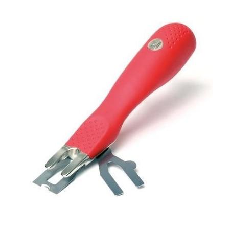 Couteau à araser Mozart de chez ROMUS : arase les cordons de soudure 2 en 1. Sont intégrés le guide d'arasement et la lame.
