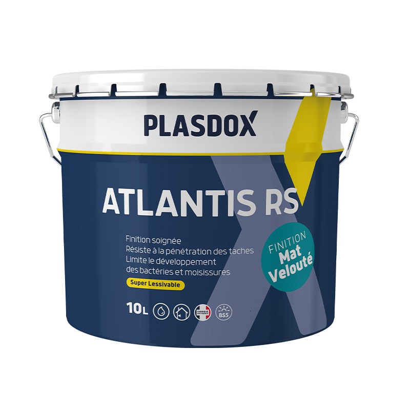 Peinture Plasdox Atlantis Rs mat velouté pour décoration soignée aux résines 100% acryliques en phase aqueuse, résistantes aux taches.