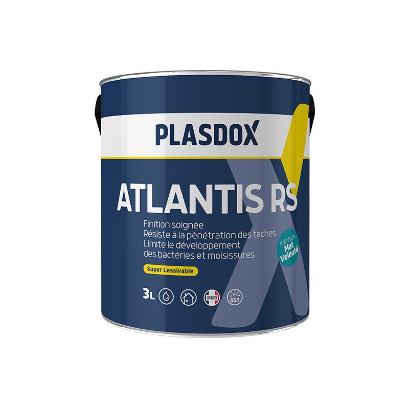 Peinture Plasdox Atlantis Rs mat velouté pour décoration soignée aux résines 100% acryliques en phase aqueuse, résistantes aux taches.