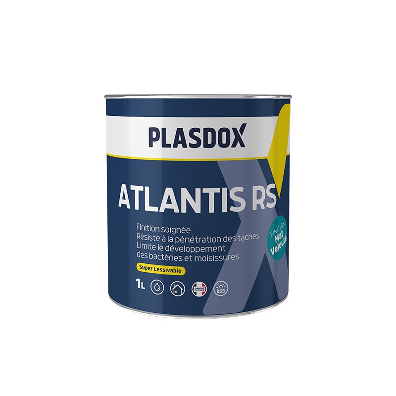 Peinture Plasdox Atlantis Rs mat velouté pour décoration soignée aux résines 100% acryliques en phase aqueuse, résistantes aux taches.