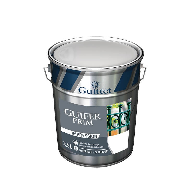 Primaire antirouille Guifer prim Guittet, primaire antirouille solvanté à séchage rapide pour la protection des structures en métaux ferreux. Travaux neufs ou rénovation sur anciennes peintures bien adhérentes.