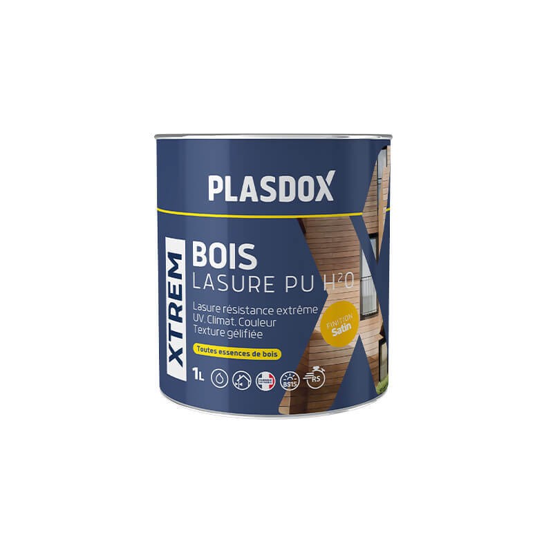 Lasure résistance extrême : Applicable dès 5°C jusqu'à 35°C. Teintable : 20 tons bois du nuancier lasure et saturateur Plasdox