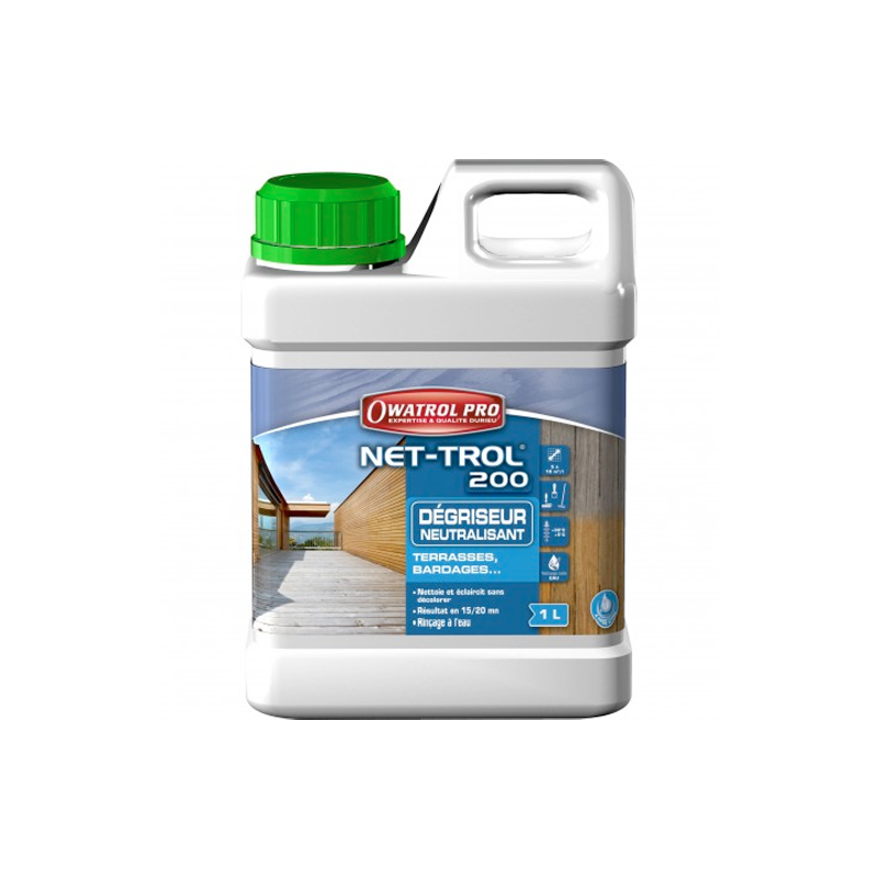 Le dégriseur détachant NET-TROL pour bois a été spécialement conçu pour redonner au bois sa couleur d'origine. Il redonne de l'éclat au bois. Sa formule ultra-performante à base d'eau et biodégradable agit très rapidement en à peine 15 min.