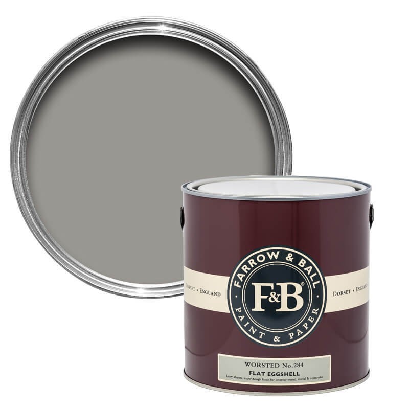 Un gris somptueux Ce gris somptueux évoque les costumes de ville coupés dans des tissus de la filature 'Worsted', du nom du village de la province anglaise du Norfolk, où le fil des vêtements était traditionnellement tissé. Appartenant au groupe de neutres des Easy Neutrals, le ton soutenu de Worsted le rend plus intense que Purbeck Stone, mais il reste plus clair que Mole's Breath. Sa sobre opulence, dépourvue de tonalités froides, en fait une teinte de fond idéale pour mettre en valeur les accents de couleurs purs.