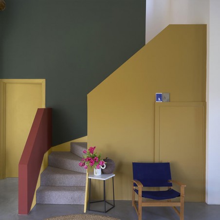 Flat Eggshell s'applique aussi bien sur le bois, le métal que le béton, et peut même être utilisée sur les sols. Elle met subtilement en valeur les plinthes, escaliers, portes et placards de cuisine, tout en assurant une protection durable contre les taches et l'usure.