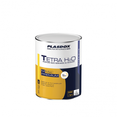 Tetra H2O mat premium Plasdox, peinture dépolluante mat profond renforcée au siloxane pour intérieur, phase aqueuse.